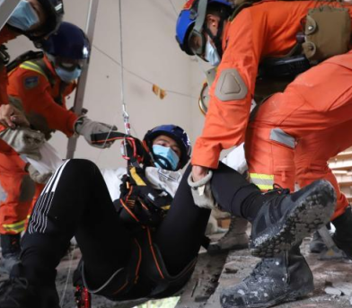 消防員使用救援三腳架